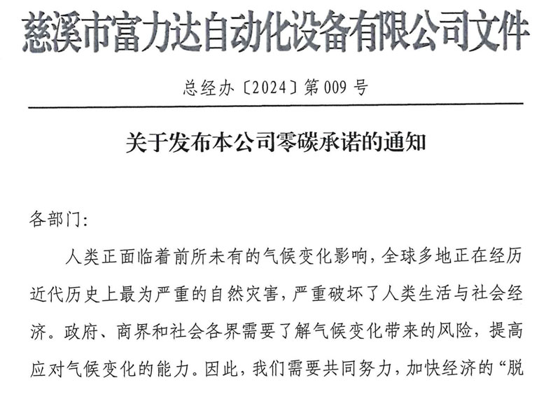 • 關于發(fā)布本公司零碳承諾的通知